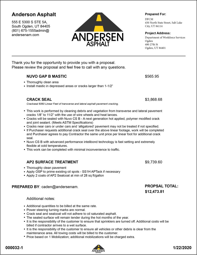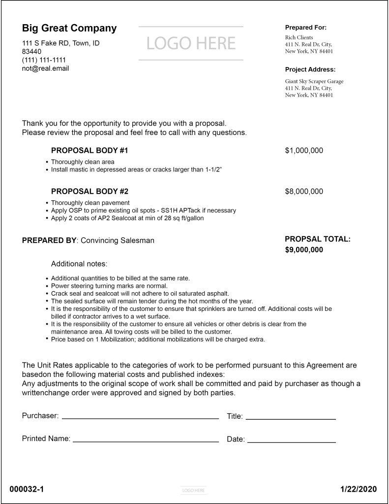 The current simple proposal templates on Pavement Soft were a little difficult to read and not organized very neatly. I was asked to re-design the layout for the templates that will be implemented into the software