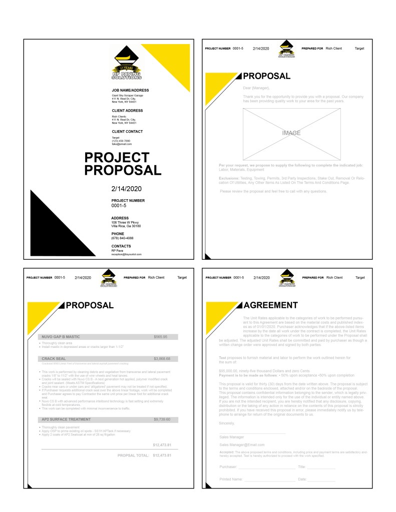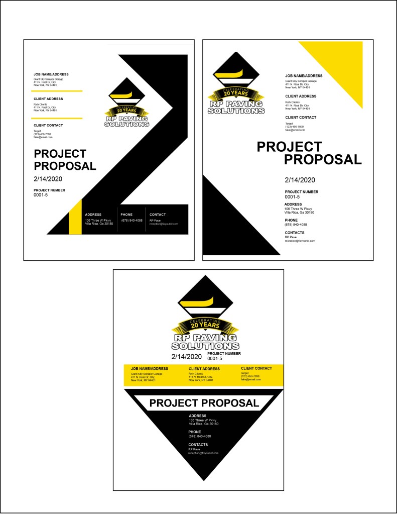 RP Paving solutions really liked the second cover page. They asked me to create the rest of their proposal that they could use for their template.
