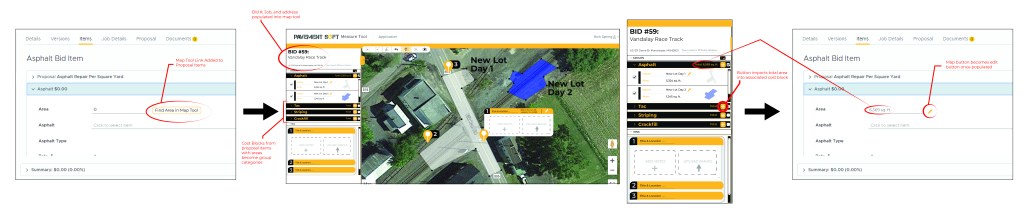This was the next layout I presented. There were still things that needed to be changed. The biggest thing was that we wanted to re-work the map tool so that it could be accessed from a proposal. This meant that the groups needed to be specific to a certain bid, and that the address should be pre-populated once opened.