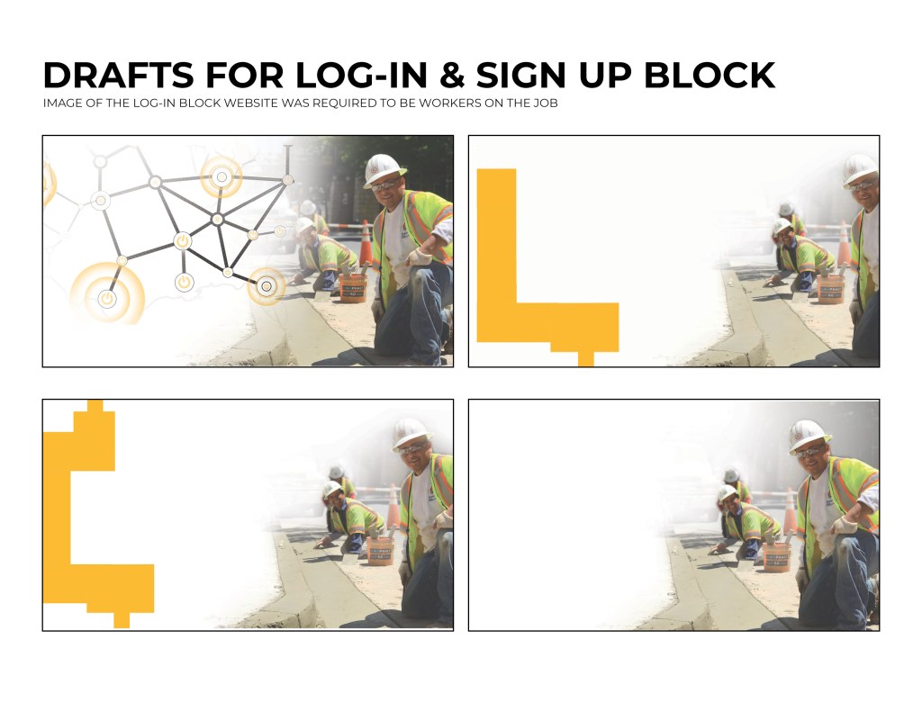 These are the log in and sign up blocks. The requirement was that I needed to show the workers in the industry to make it relate-able to the potential client.