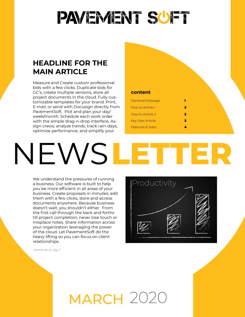 Today I was asked to start a layout for a weekly news letter. The goal is to be able to 1) reach out to our clients about the new updates in the software 2) highlight success stories and companies that are doing well 3) brief how to tutorials to help clients learn how to use the software better.