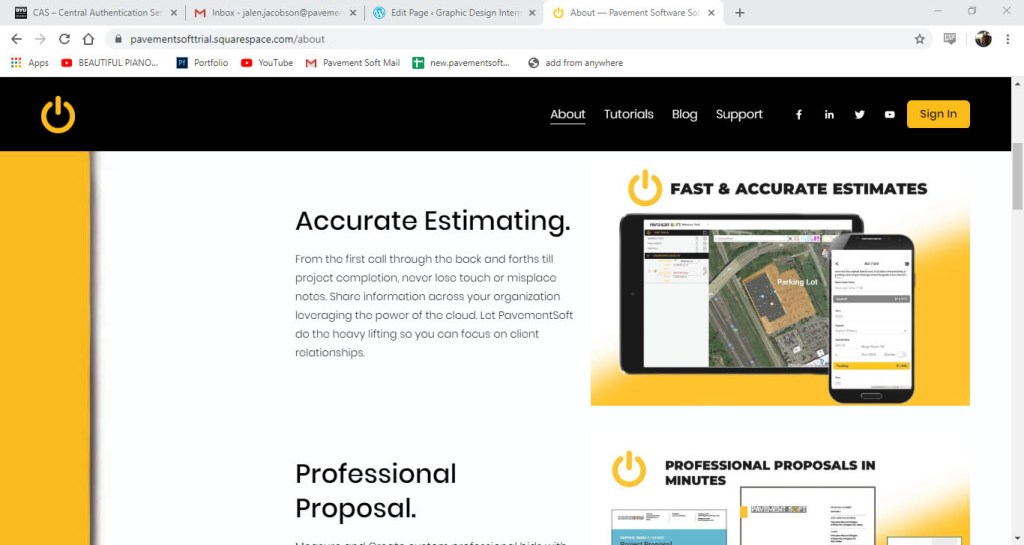 For the new landing page we wanted to make it less wordy and move a lot of the information into the about page. We also needed to make it feel more geared toward the construction industry. This is how I addressed the landing page.