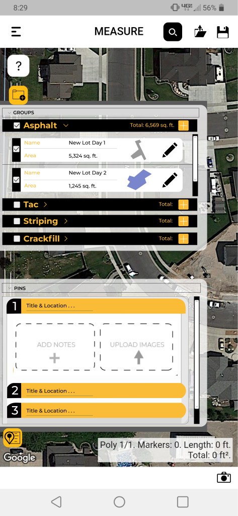 My next approach was to make the tabs, and figure out how the tool would integrate into a bid. I also am showing here, how the edit menu would appear below the area info, this makes it easier to edit the name, colors, and other info.