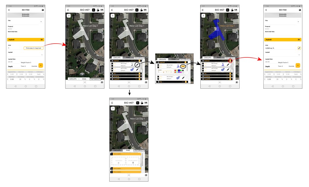 Some of the specific things that I was asked to work on included figuring out a better work flow from the bid to the map tool. Similar to what was done on the desktop portion of the software. I started by getting a layout and then figuring out how the user would interact with the software.